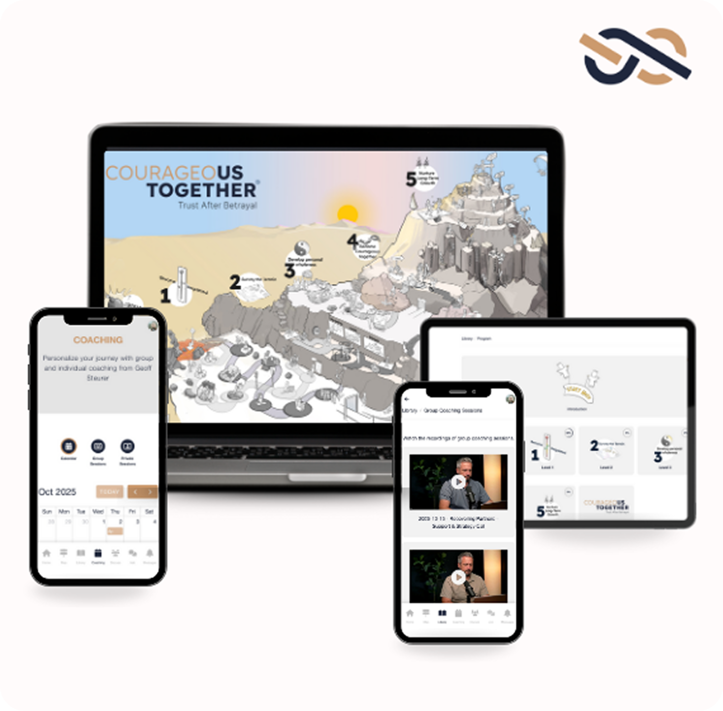 Courageous Together™ is a 12-month online program that gives couples a proven framework for rebuilding after betrayal. You’ll receive expert guidance directly from Geoff Steurer, practical tools, and live community support to help you restore trust, strengthen emotional safety, and reconnect with confidence.